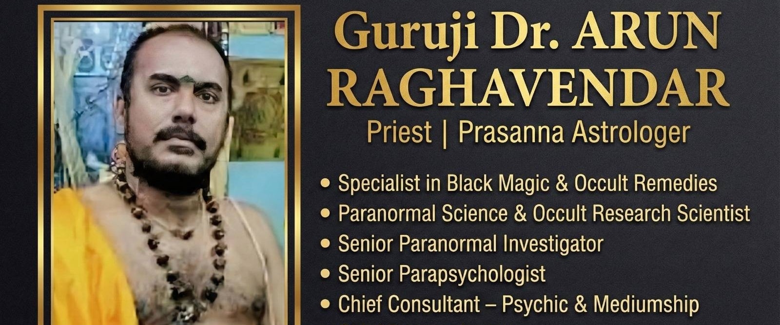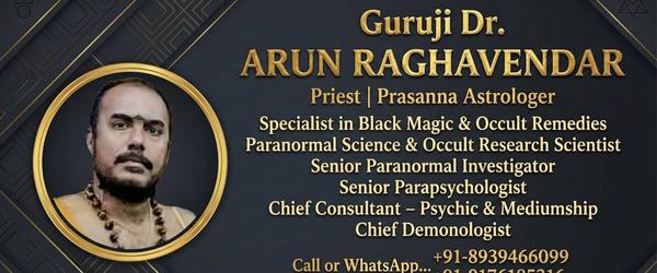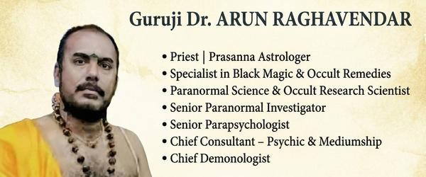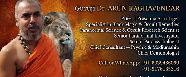 SPIRITUAL And OCCULT ASTROLOGER, Specialist In BLACK MAGIC And PRASANNAM. BLACK MAGIC EXPERT Specialist Guruji Dr ARUN RAGHAVENDAR to remove the any type of hurdle from life. And make your life problem free where you and your family can live happy life. செய்வினை, ஏவல், பில்லி, சூனியம், திருஷ்டி நீங்க, BLACK MAGIC Removal, மாந்த்ரீக தோஷம் நீங்க, வசியம் செய்ய, ஜோதிடம், ப்ரசன்னம் பார்க்க, அ...