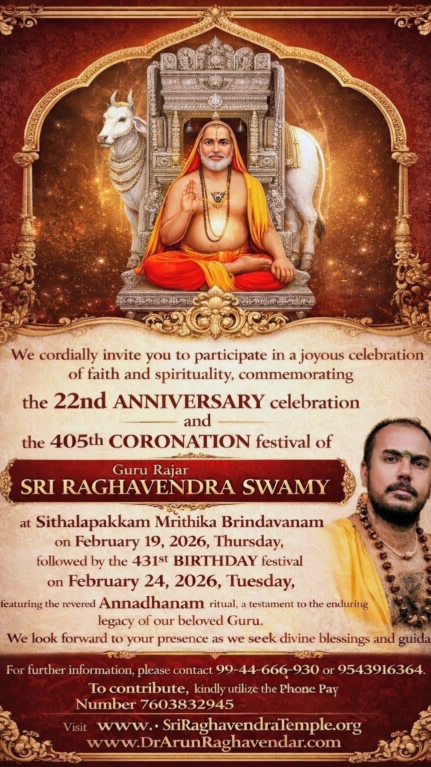 Sri Raghavendra Swamy Birthday and Pattabishegam function Invitation
